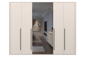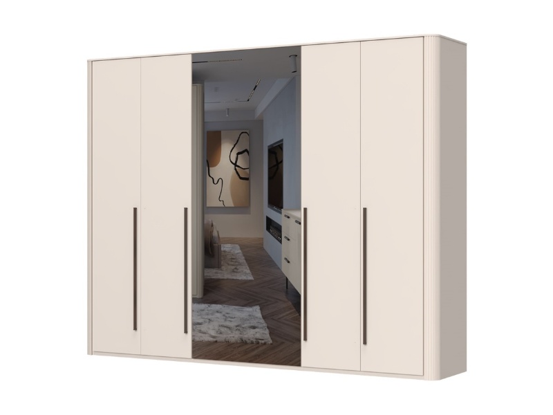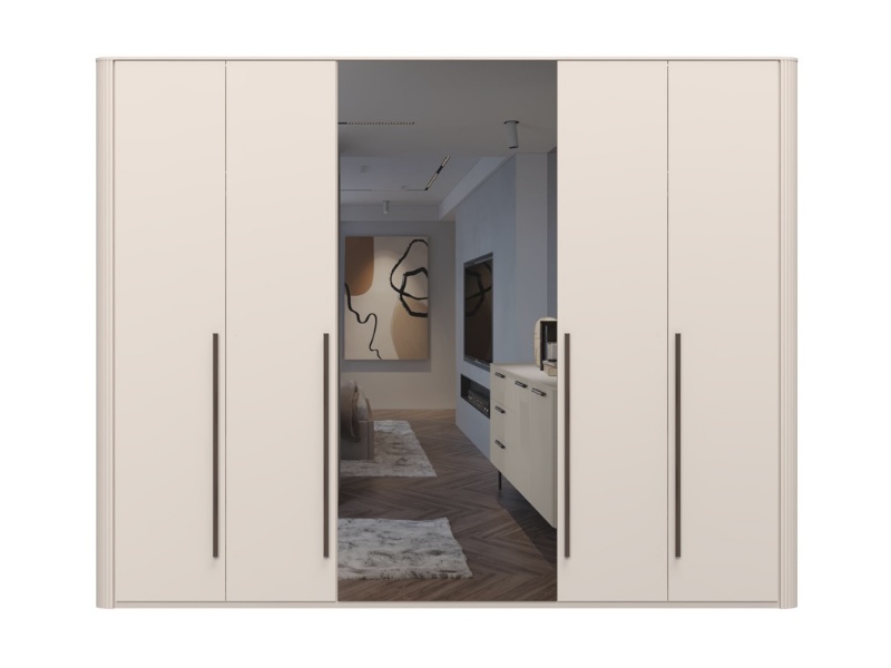 Dulap cu 6 usi cu balamale RONDO 228x225x56cm casmir/ oglinda, manere Midnight Copper