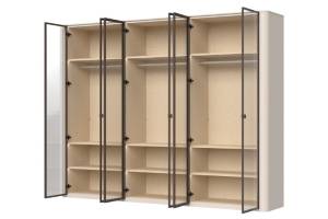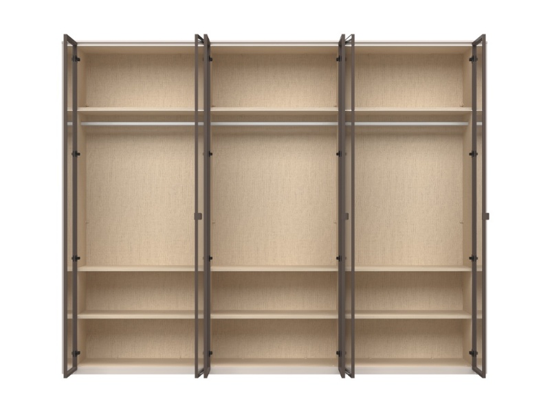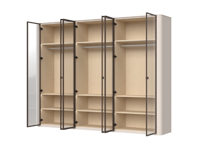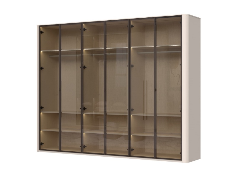 Dulap cu 6 usi cu balamale RONDO 288x225x56cm casmir/ sticla Parsol, manere Midnight Copper