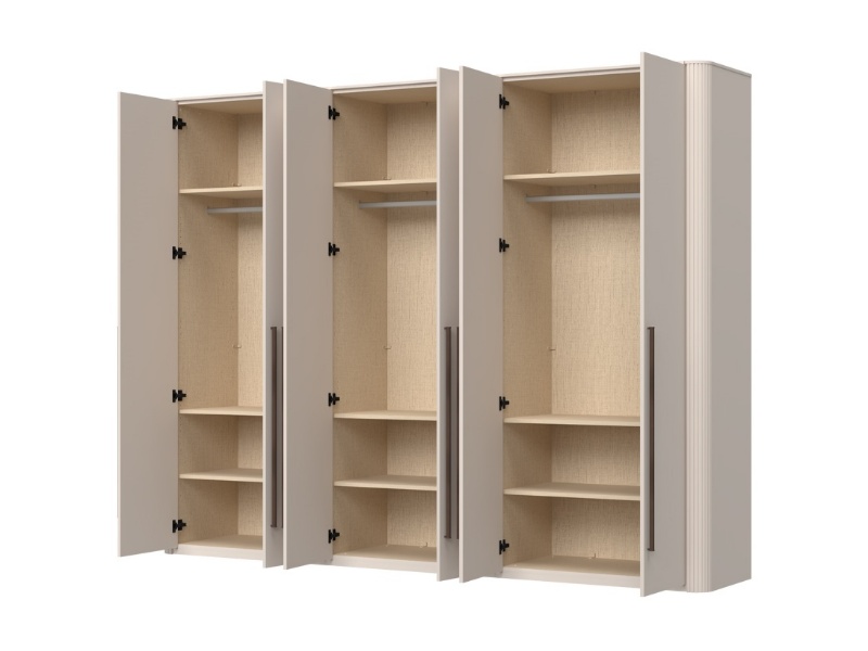 Dulap cu 6 usi cu balamale RONDO 288x225x56cm casmir/ sticla Parsol, manere Midnight Copper