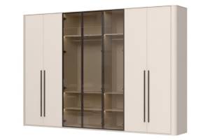 Dulap cu 7 usi cu balamale RONDO 333x225x56cm casmir/ sticla Parsol, manere Midnight Copper