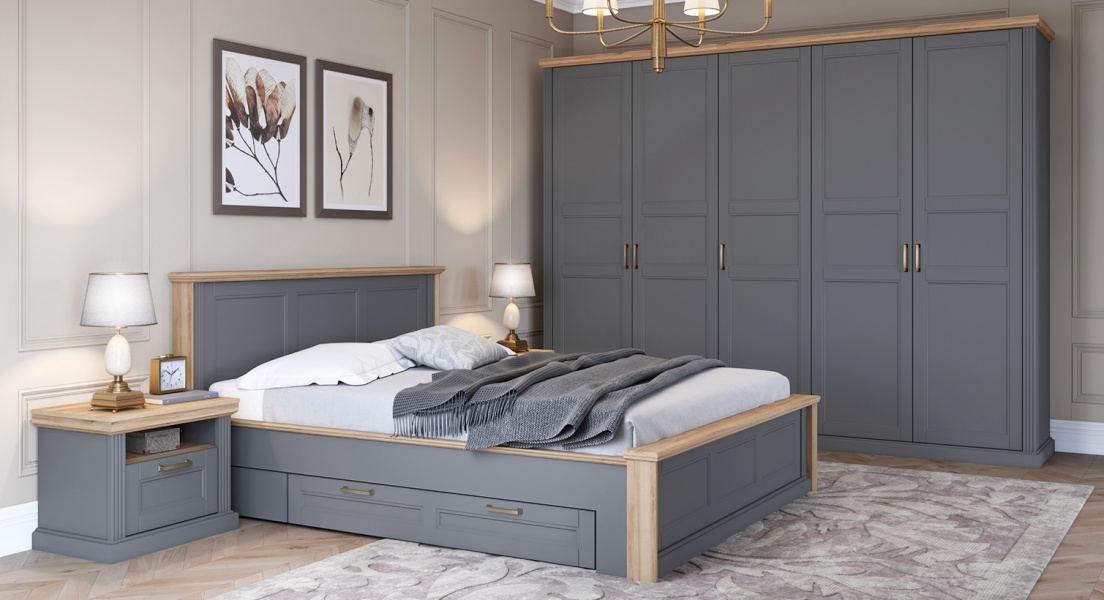 Dulap cu 5 usi cu balamale TARA GREY 291x227x59cm grafit/ Nuc Pacific