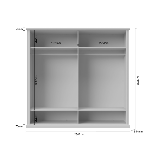 - are 4 polite si 2 bare pentru umerase incluse (dulap 236cm)