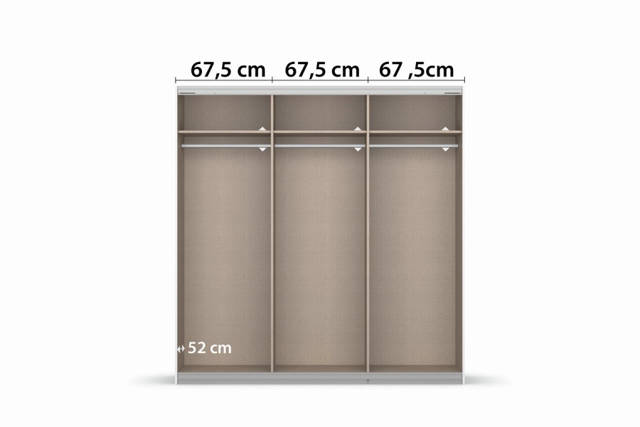 - Dulapul are inclus 1 polita si 1 bara pentru umeras pentru fiecare compartiment, in total 3 polite 66x48cm si 3 bare pentru umerase.
