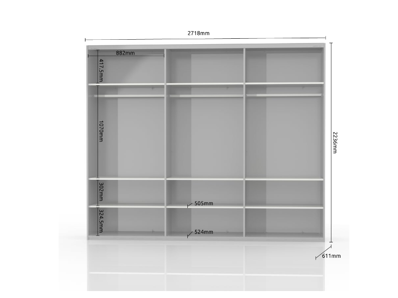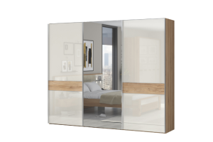 - trei usi (18mm) o usa oglinda, 2 usi decor bej lucios si nuc Pacific