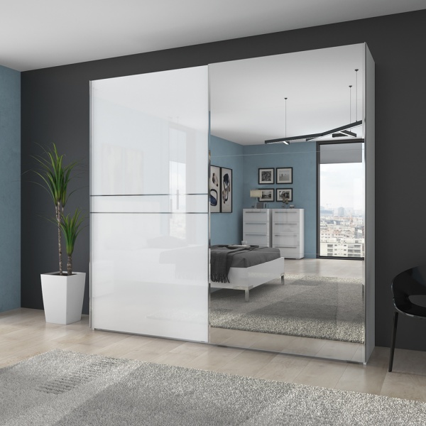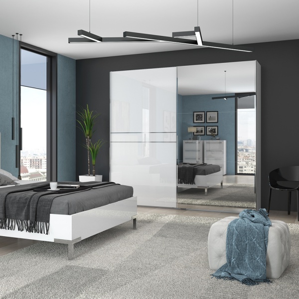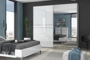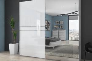 Dulap cu usi glisante cu oglinda 230x224x61cm PIANO WHITE