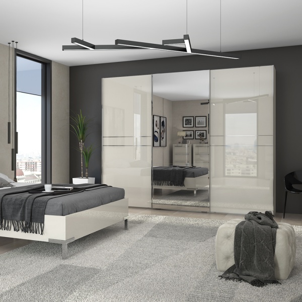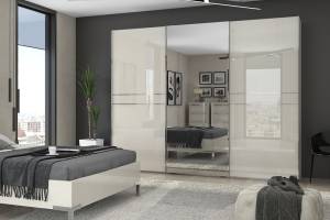 Dulap cu usi glisante PIANO BEIGE 272x224x61cm bej lucios/ oglinda, maner crom