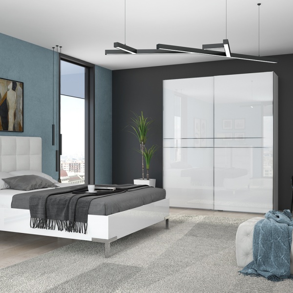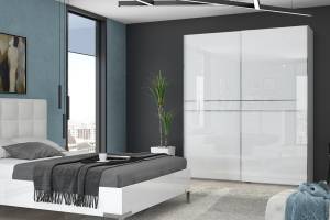 Dulap cu usi glisante PIANO WHITE 182x224x61cm alb lucios, manere crom