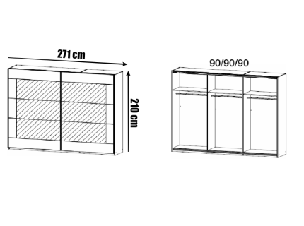 - Dulapul are inclus 2 polite si 1 bara pentru umeras pentru fiecare compartiment, in total 8 polite 88x48cm si 4 bare pentru umerase.