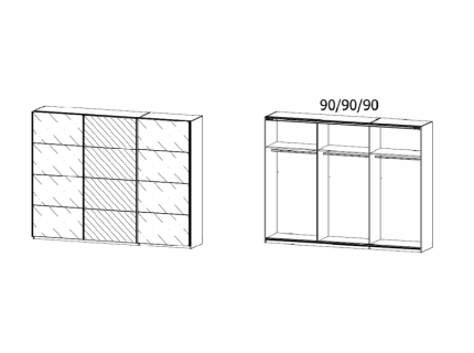 - Pentru compartimentele de 90cm dulapul are inclus 2 polite si 1 bara pentru umeras, in total 6 polite 88x48cm si 3 bare pentru umerase.
