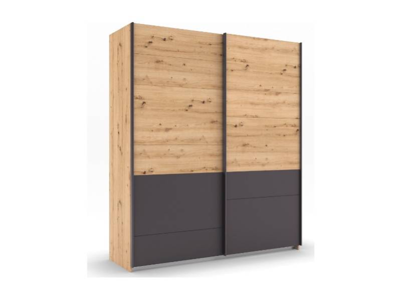 Dulap stejar artisan+gri metalic cu usi glisante 181x210x62cm BILBAO