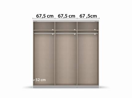 - Dulapul are inclus 2 polite si 1 bara pentru umeras pentru fiecare compartiment, in total 8 polite 66x48cm si 4 bare pentru umerase.