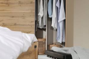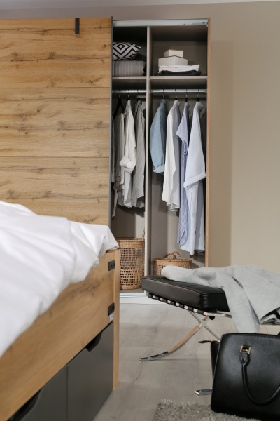 Dulapul vă pune la dispoziție un spațiu generos pentru depozitarea articolelor vestimentare, păstrându-le organizate și mereu la îndemână în dormitor.