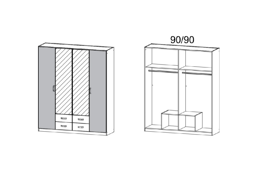 - 181 / 210 / 58 cm (4 usi +4 sertare)