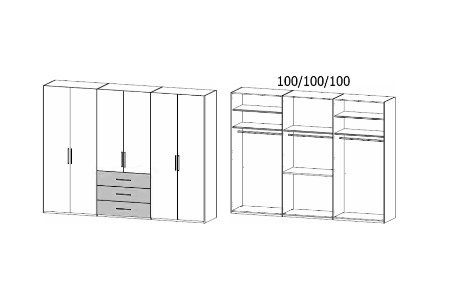 - 301 / 223 / 60 cm (6 usi + 3 sertare)