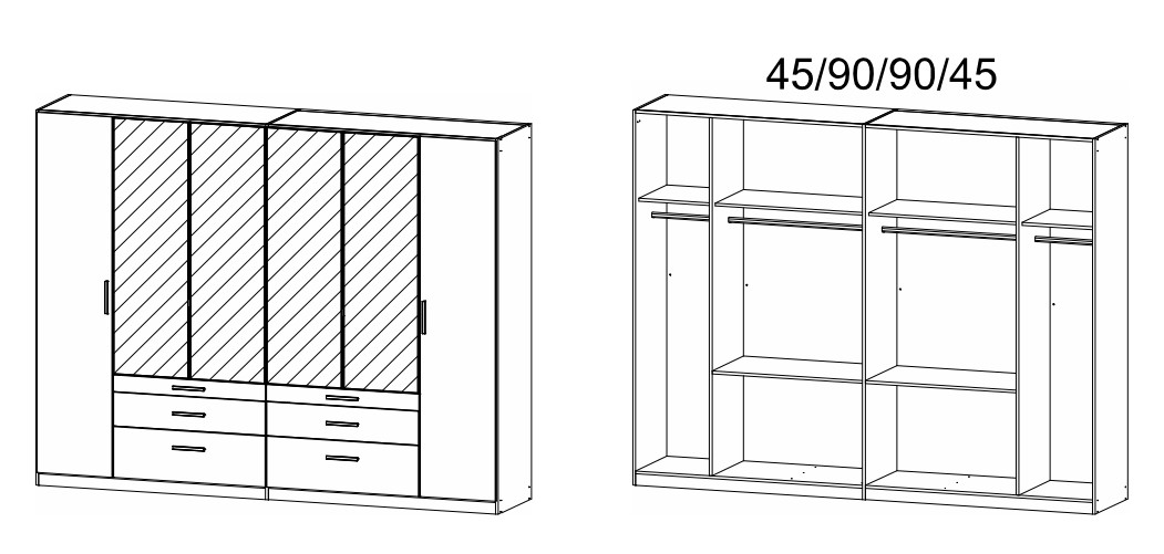- 271 / 210 / 54 cm (6 usi + 6 sertare)
