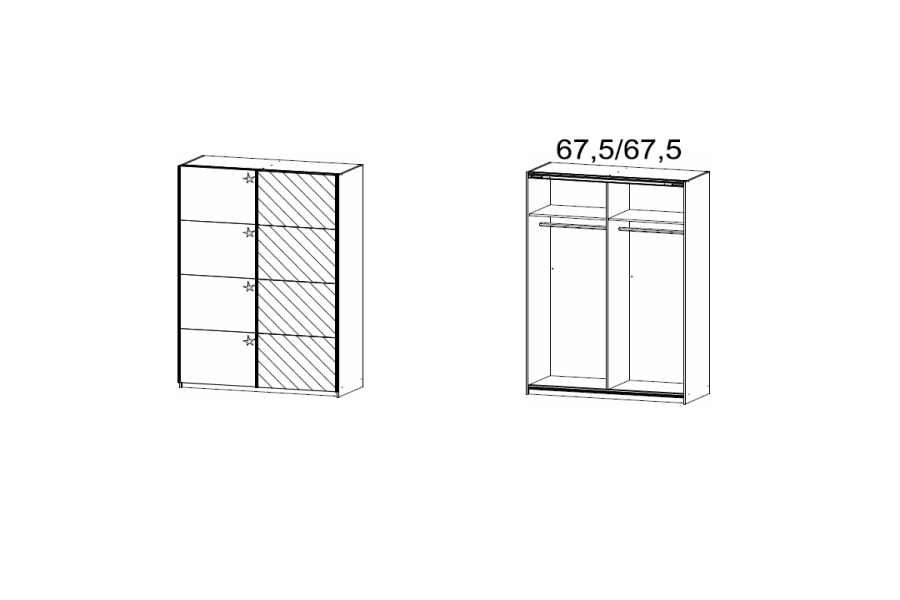 Dulapul vă pune la dispoziție un spațiu generos pentru depozitarea articolelor vestimentare, păstrându-le organizate și mereu la îndemână în dormitor.