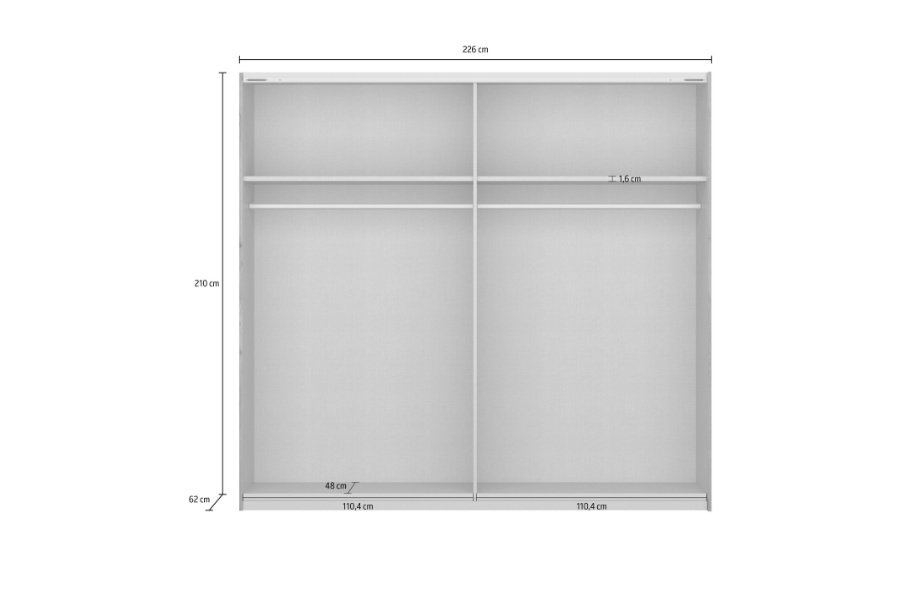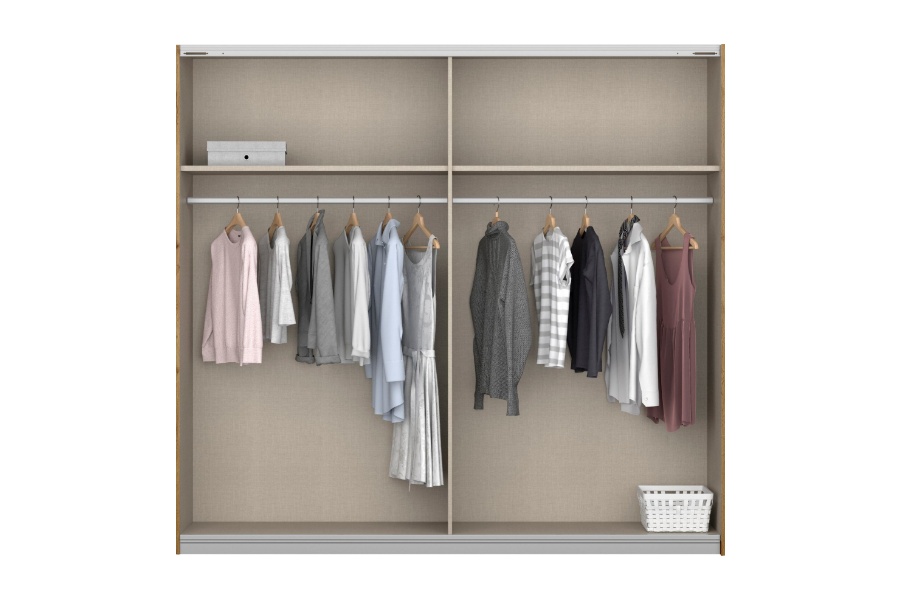 Dulapul vă pune la dispoziție un spațiu generos pentru depozitarea articolelor vestimentare, păstrându-le organizate și mereu la îndemână în dormitor.