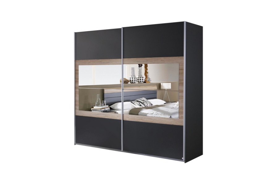 - Usi gri metalic - oglinda (decor stejar sanremo ) / carcasa gri metalic