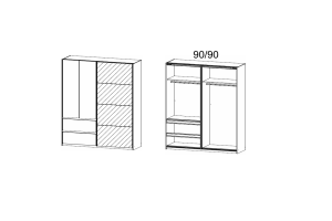 - 181 / 210 / 62 cm (3 usi + 2 sertare)