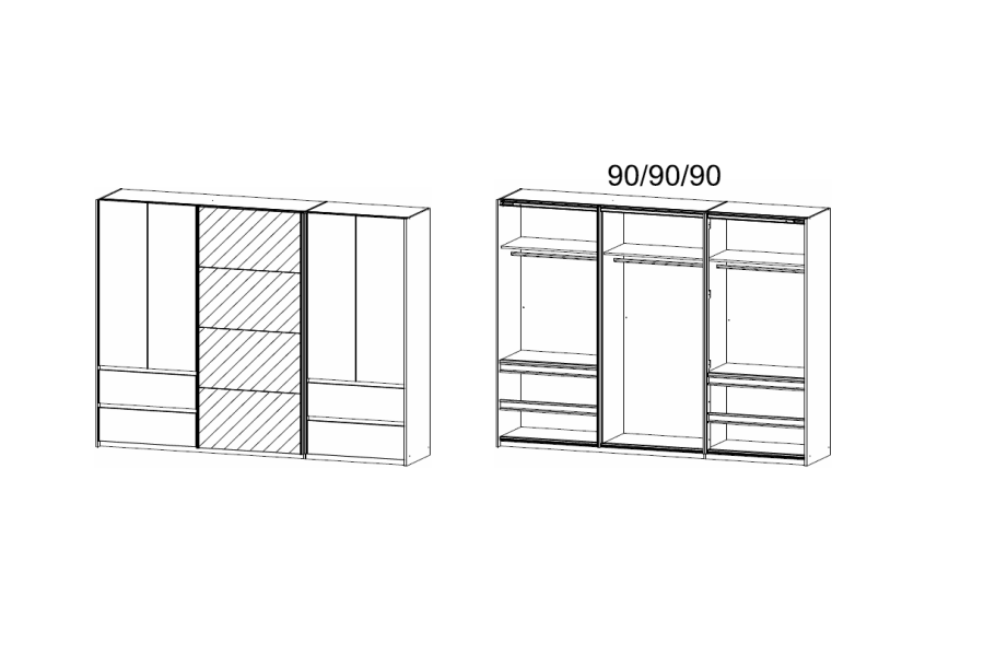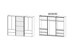 - 271 / 210 / 62 cm (5 usi + 4 sertare)