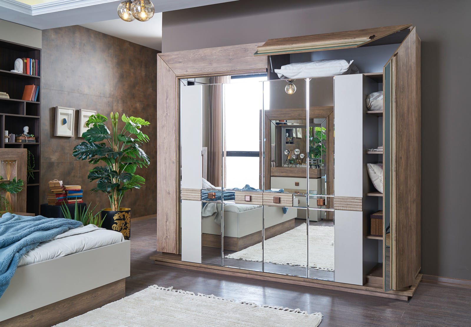 Materiale folosite la productie: MDF (partile principale), PAL, oglinda, metal, material textil, sticla