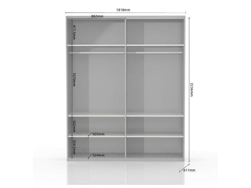 - dulapul contine standard 6 polite si 2 bare pentru umerase