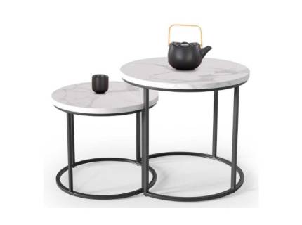 Set 2 masute NOLAN B WHITE din MDF alb si lemn de fag 116x66xH45cm / 75x43xH39cm