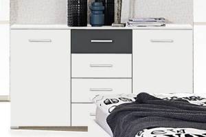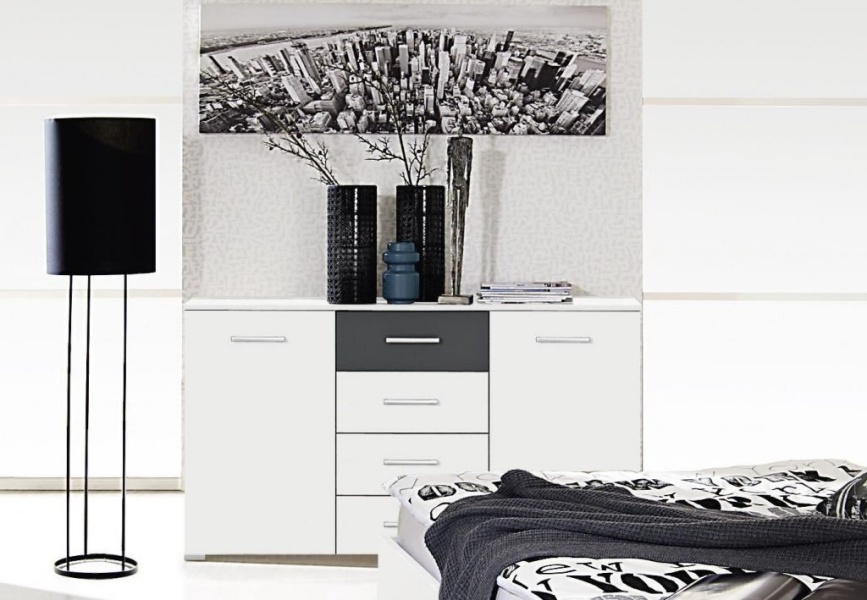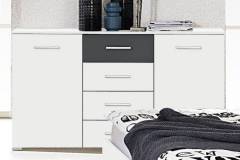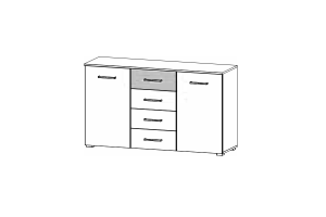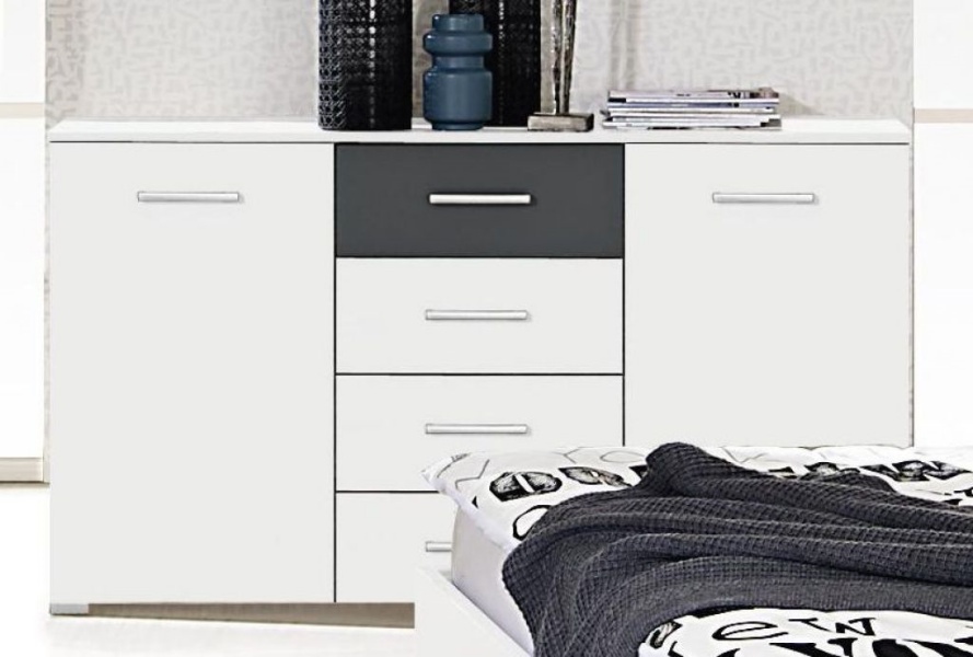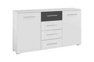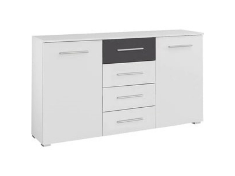 Comoda alb alpin/ gri metalic cu 2 usi + 4 sertare 140x81x42cm BARCELONA
