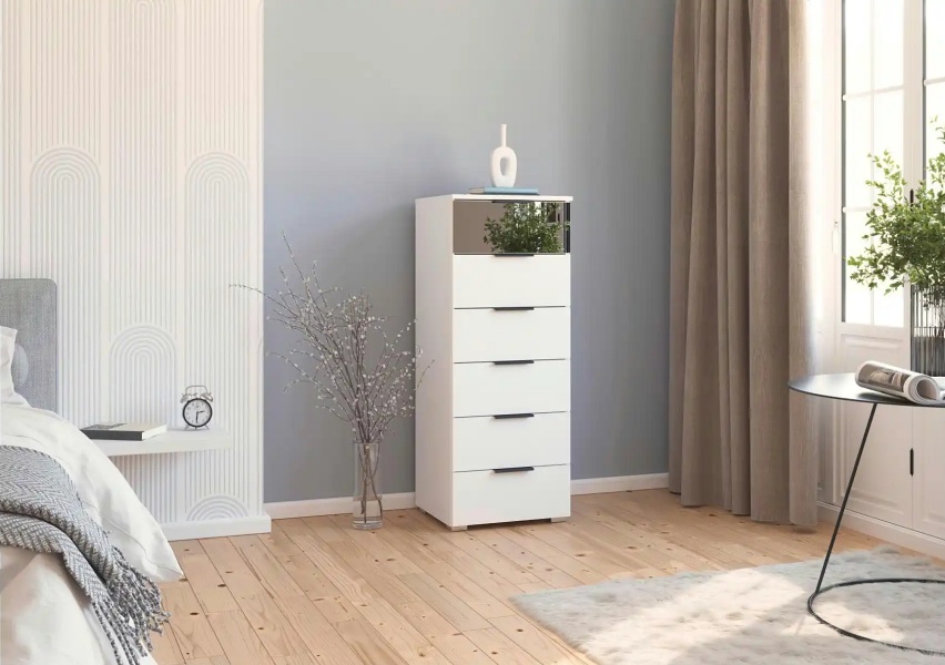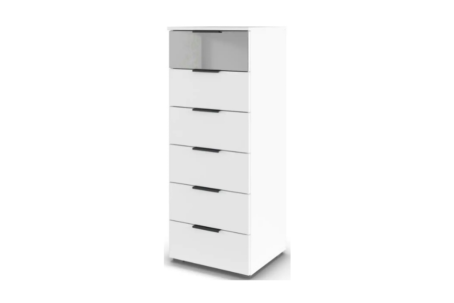 - Sertare alb alpin - Oglinda gri / carcasa alb alpin - manere gri metalic