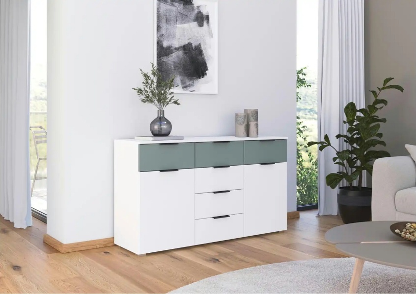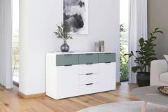 - Sertare alb alpin - Sage / carcasa alb alpin - manere gri metalic