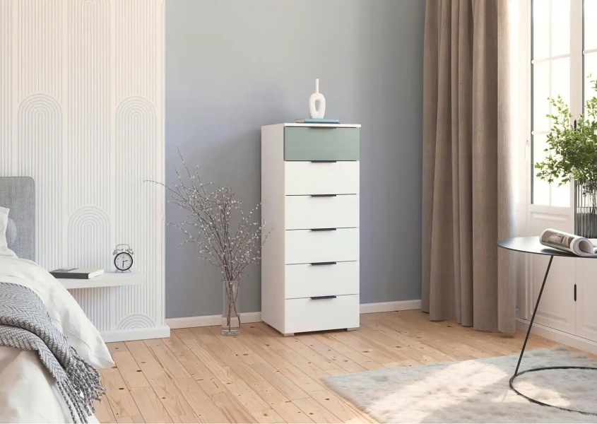 - Sertare alb alpin - Sage / carcasa alb alpin - manere gri metalic