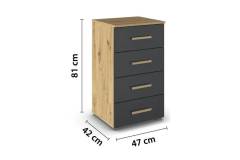 Comoda este realizata din panouri aglomerate din lemn crud, fara compusi chimici (formaldehida).