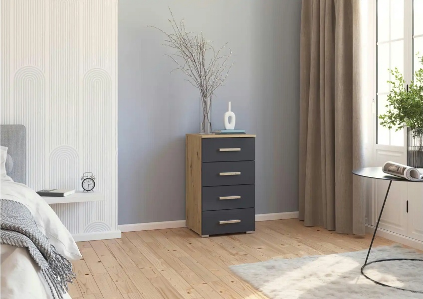 Comoda poate avea sertare cu sistem de culisare pe sine sau usi cu balamale