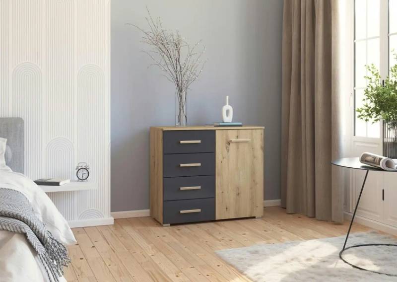 Comoda poate avea sertare cu sistem de culisare pe sine sau usi cu balamale