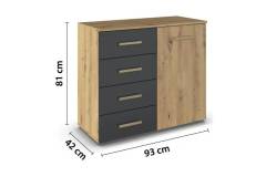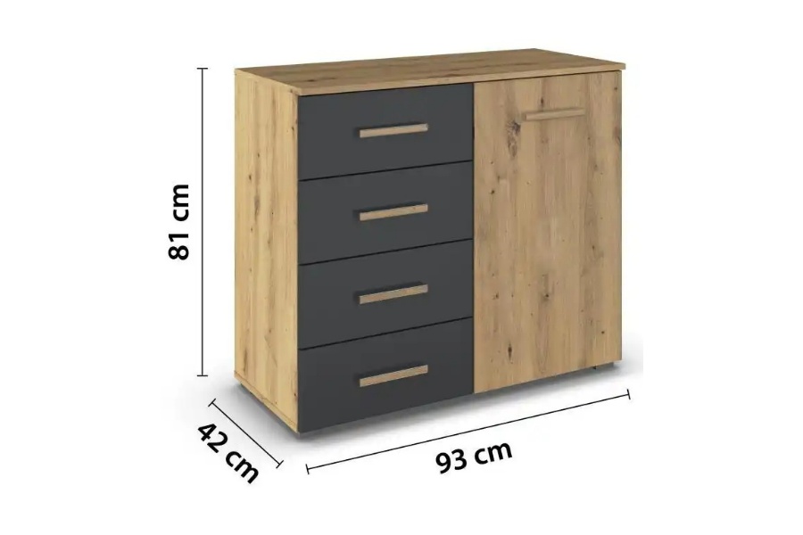 93 / 81 / 42 cm (1 usa + 4 sertare)