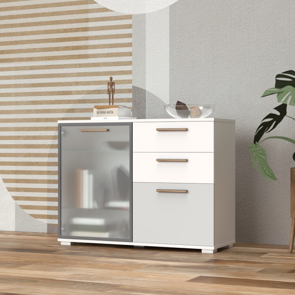Comoda cu 1 usa din sticla, 1 usa mata si 2 sertare C9 ALL ROOM CONCEPT 111x83x40cm configurabila