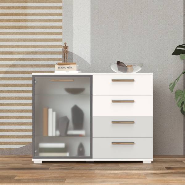 Comoda cu 1 usa din sticla si 4 sertare C10 ALL ROOM CONCEPT 111x83x40cm configurabila