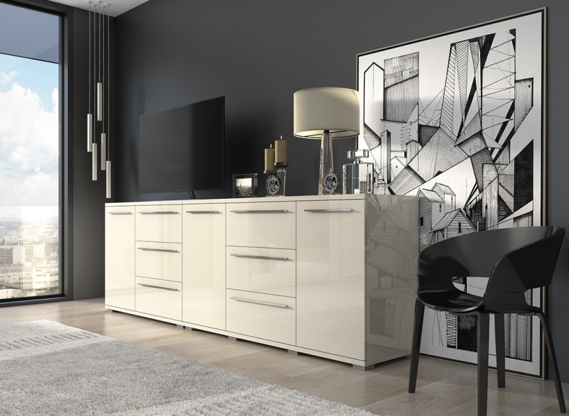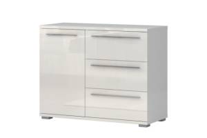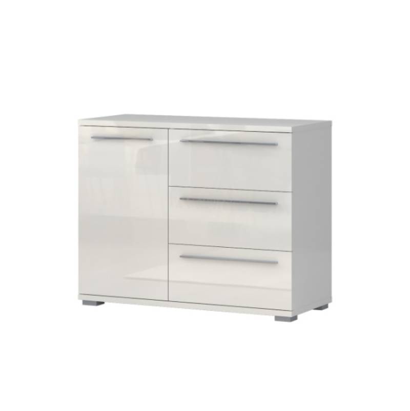 Comoda cu 1 usa si 3 sertare PIANO BEIGE 107x85x45cm bej lucios, manere crom