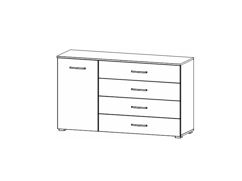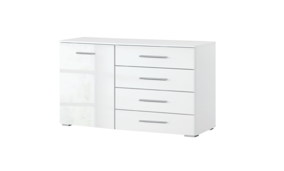 Comoda cu 1 usa si 4 sertare ADITIO 120x81x42cm alb alpin/ alb lucios