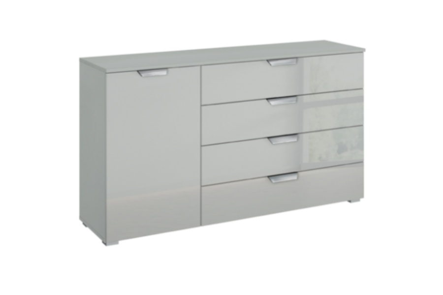 Comoda cu 1 usa si 4 sertare ADITIO 140x81x42cm silk grey/ sticla gri