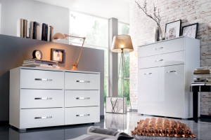 Comoda poate avea sertare cu sistem de culisare pe sine sau usi cu balamale