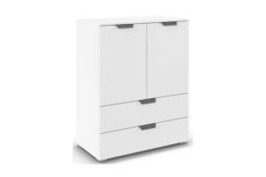Comoda cu 2 usi si 2 sertare ADITIO 80x100x42cm alb alpin, manere crom