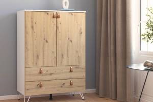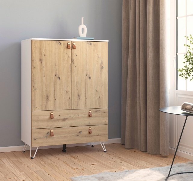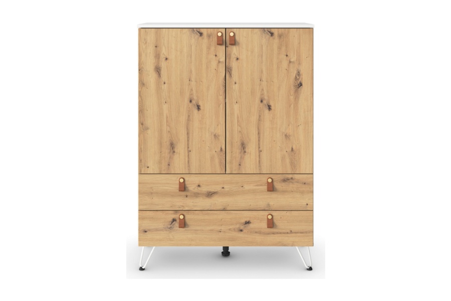 Comoda cu 2 usi si 2 sertare ADITIO 80x100x43cm alb alpin/ stejar Artisan
