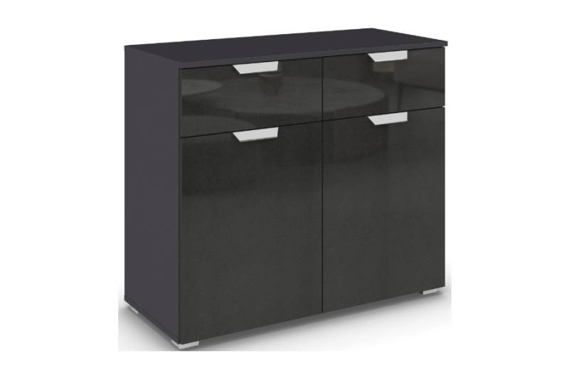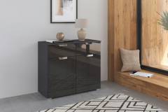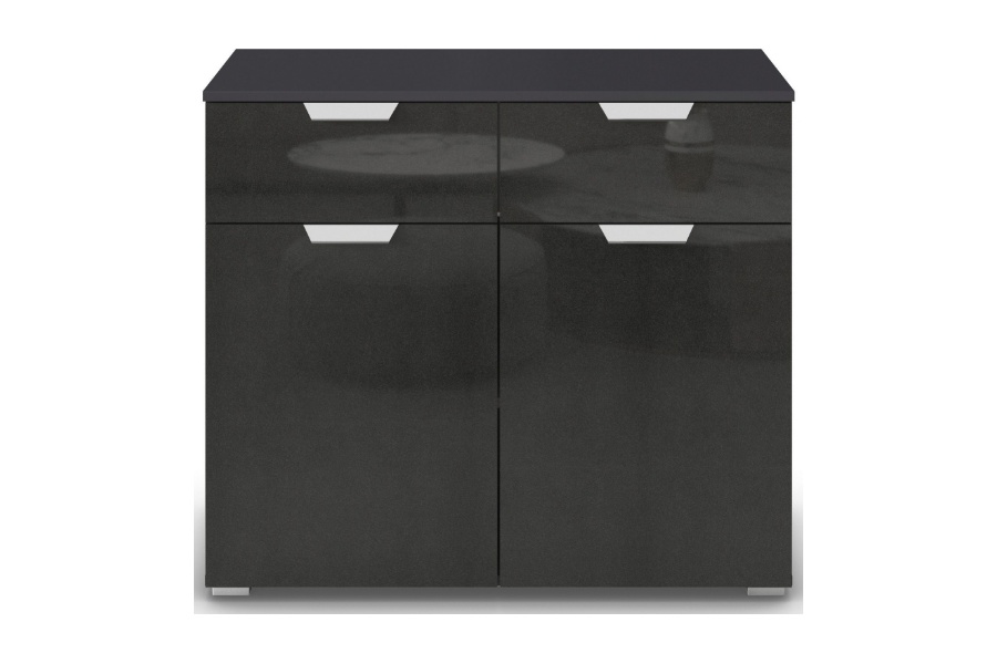 Comoda cu 2 usi si 2 sertare ADITIO 80x81x42cm gri metalic/ gri metalic lucios