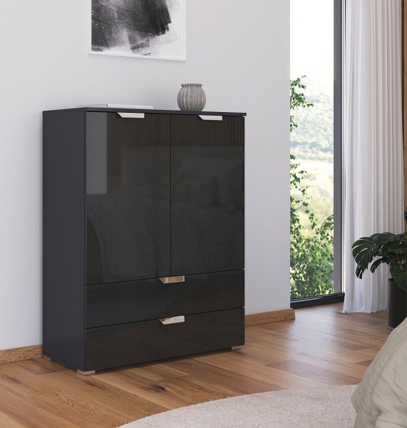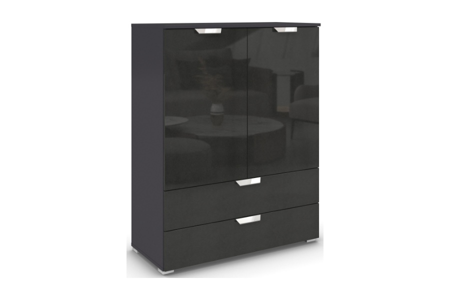 Comoda cu 2 usi si 2 sertare ADITIO GLAMOUR 80x100x42cm gri metalic/ gri metalic lucios