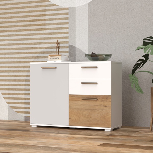 - comoda are 1 usa mare, 1 usa mica si 2 sertare