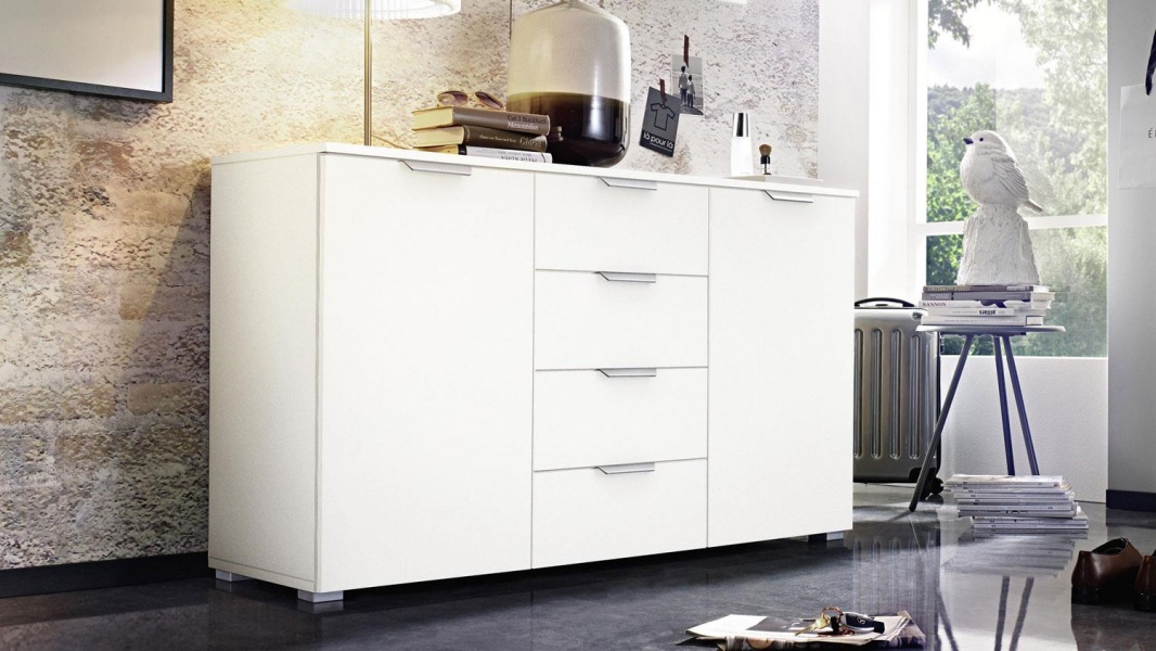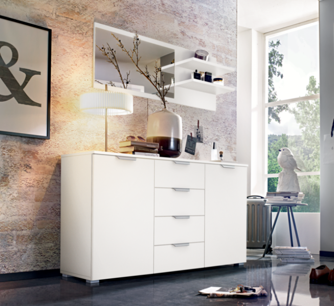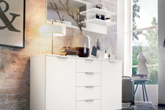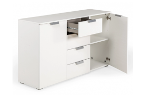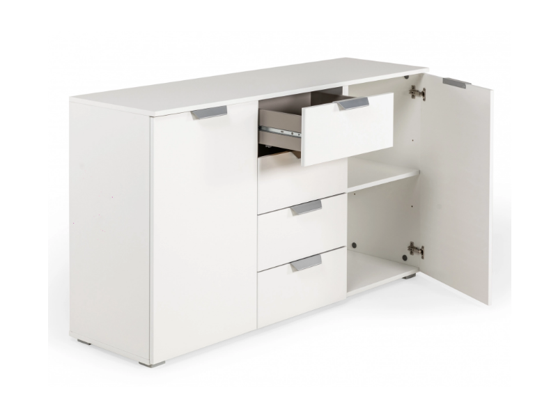 Comoda poate avea sertare cu sistem de culisare pe sine sau usi cu balamale