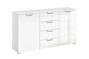 Comoda cu 2 usi si 4 sertare ADITIO 120x81x42cm alb alpin/ sticla alba