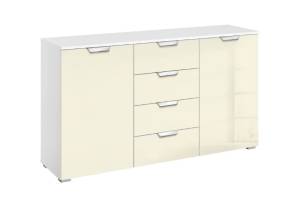 Comoda cu 2 usi si 4 sertare ADITIO 140x81x42cm alb alpin/ sticla champagne