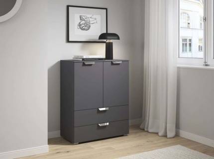- comoda are 2 usi + 4 sertare decor grafit mat